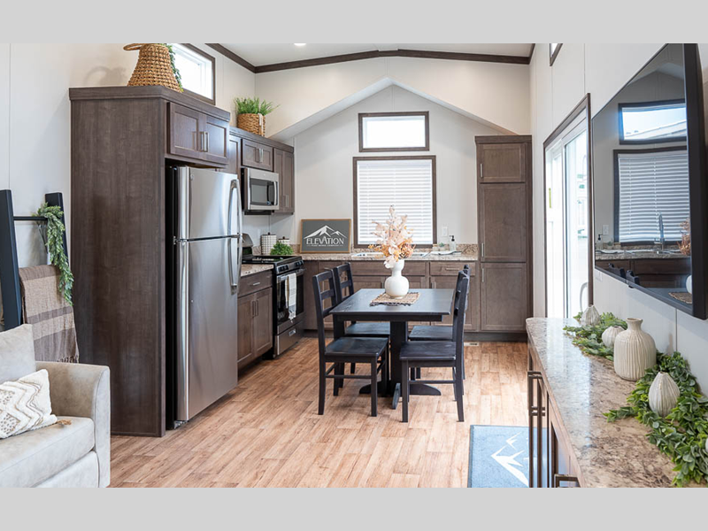 Elevation park model 3-102 highlights: Pantry Wood Table with Chairs Queen Bed ... more about Elevation 3-102