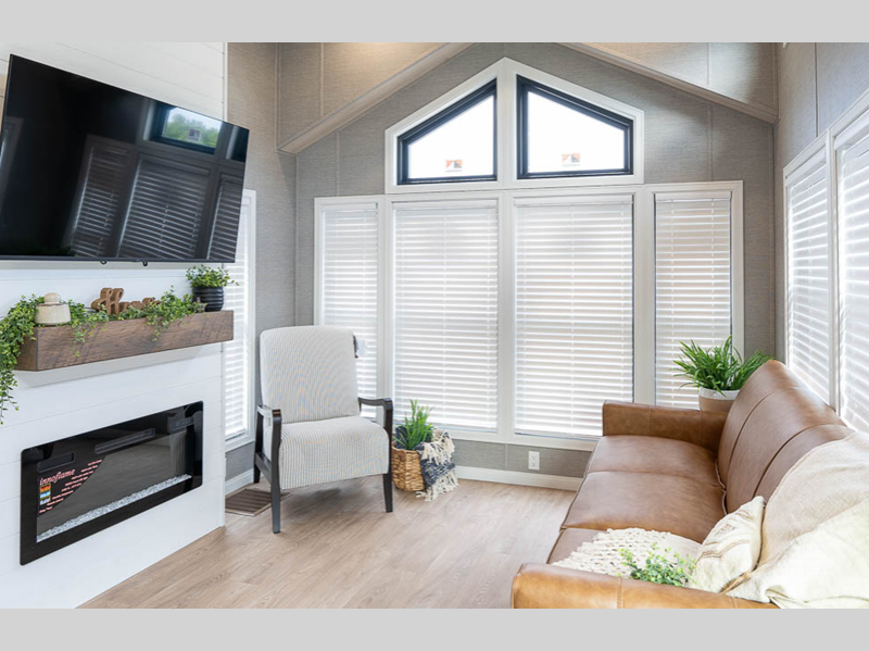 Elevation park model 7-128 highlights: Queen Bed Two Fireplaces Wine Rack ... more about Elevation 7-128