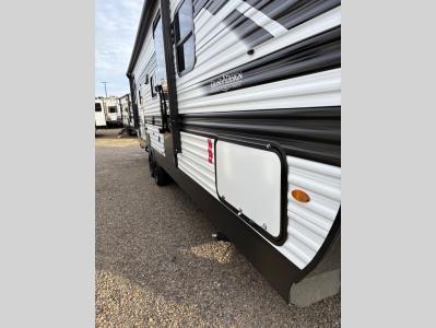 Get ready to take your travels to new heights with our incredible luxury travel trailer! The front bedroom has a queen bed, wardrobe, and overhead cabinets for all your favorite belongings, the perfect place to relax and recharge after a long day of adventure. The living room/kitchen combined area is equipped with a U-shaped dinette, three-burner cooktop, microwave, refrigerator, pantry, and 62” theater seating. Perfect for cooking up your favorite meals, entertaining friends and family, or simply relaxing and enjoying the comforts of home. The full bathroom is spacious and complete with a linen closet for added convenience. And with double-sized bunk beds featuring curtains and under-bunk storage, the kids will have their cozy retreat. But the adventure doesn't stop there! Outside, you'll find an exterior griddle with a 1.7 refrigerator, perfect for cooking up a storm in the great outdoors. And with a massive 19’ awning, you'll have plenty of shade and protection from the elements, plus, with two entry/exit doors and pass-through storage, you'll have easy access to the trailer and all your gear.