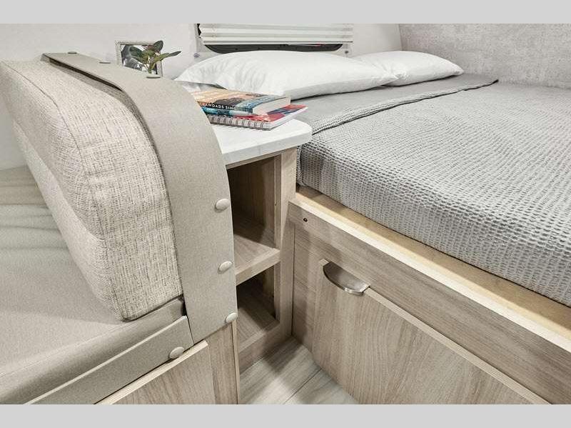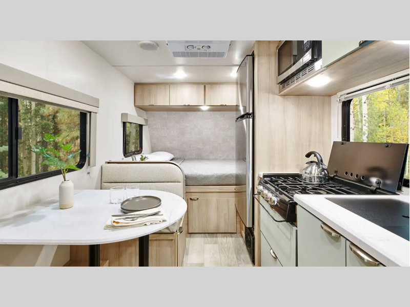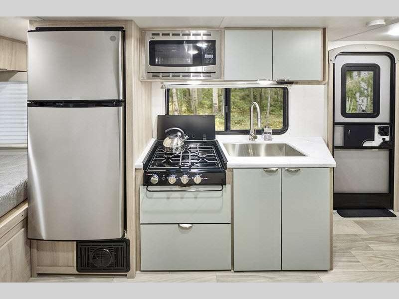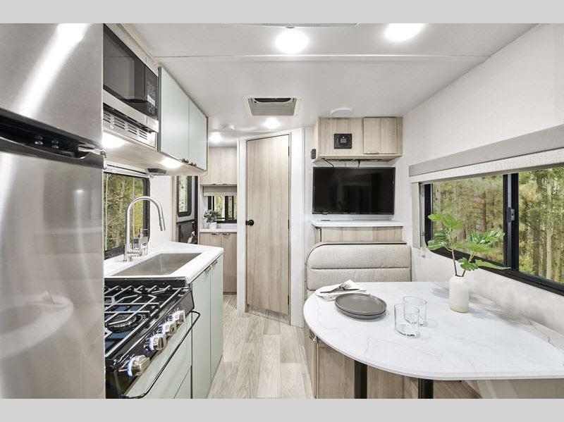 Sleeps 3 Slides 1 Length 22 ft 5 in Ext Width 7 ft Ext Height 10 ft 5 in Int Height 6 ft 4 in Interior Color Paragon Exterior Color White Hitch Weight 404 lbs GVWR 5500 lbs Dry Weight 4142 lbs Fresh Water Capacity 31 gals Grey Water Capacity 25 gals Black Water Capacity 25 gals Tire Size ST235/75R15 Furnace BTU 18000 btu Available Beds RV Queen Refrigerator Type 12V Refrigerator Size 10 cu ft Convection Cooking Yes Shower Size 30" x 36" Number of Awnings 1 Axle Weight 3000 lbs LP Tank Capacity 20 lbs Water Heater Capacity 6 gal Water Heater Type DSI Gas/Electric AC BTU 13500 btu TV Info LR Smart TV Awning Info 15' Power with LED Lighting Axle Count 2 Number of LP Tanks 2 Shower Type Standard Electrical Service 30 amp Similar Floorplans